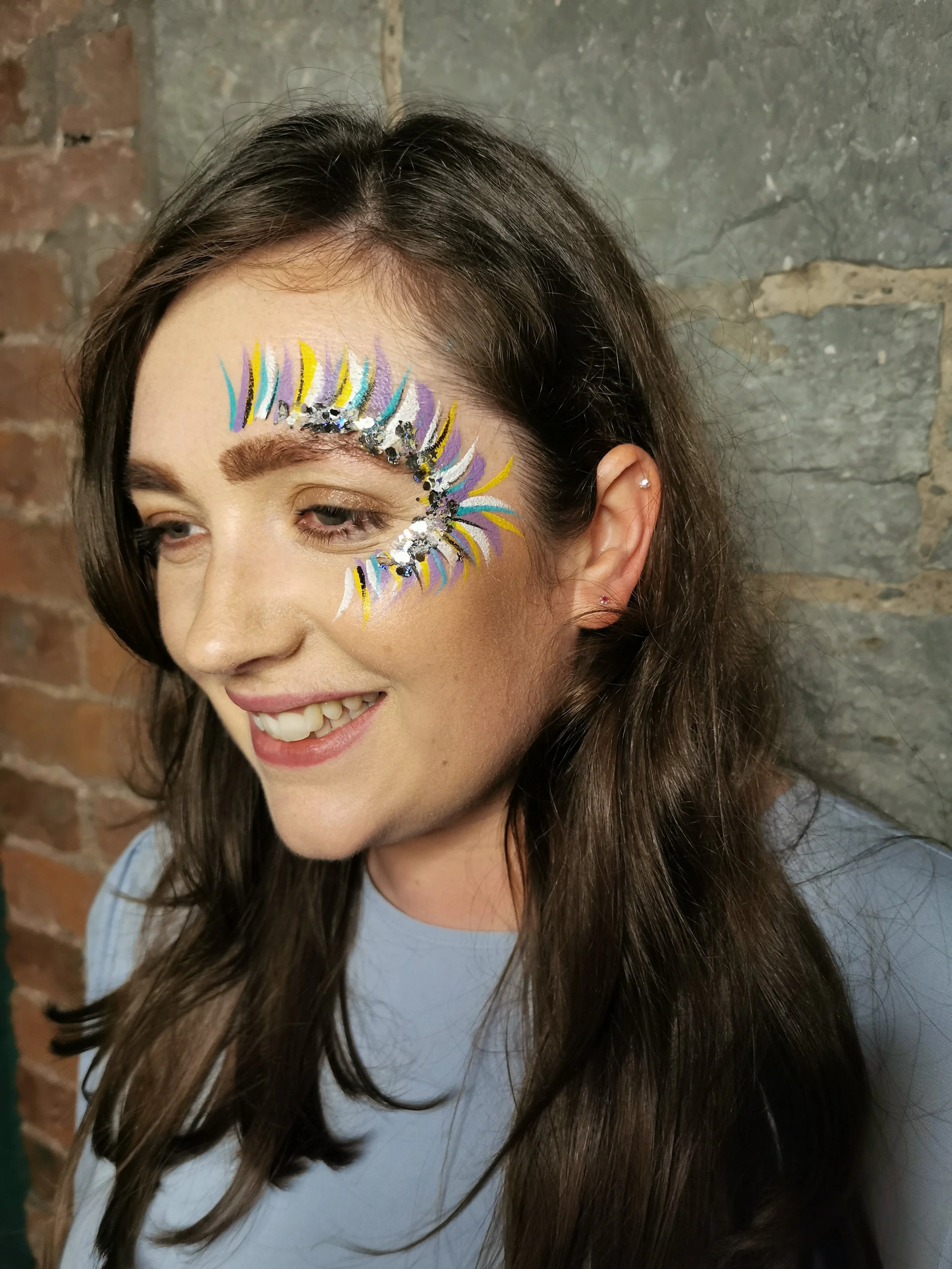 There began my love of more delicate and artistic face painting designs and when I started attending music festivals later on I then delved into glitter, gems and embellishments. Creating bespoke designs and pieces by mixing up between using paints, glitter, gems, pigments and makeup is something I take great joy in. I get lost in the art and see where it takes me. Being able to create unique face “paintings”, for adults and kids alike, is a service I love being able to provide, and I’m only delighted any opportunity I get to whip out the paints!